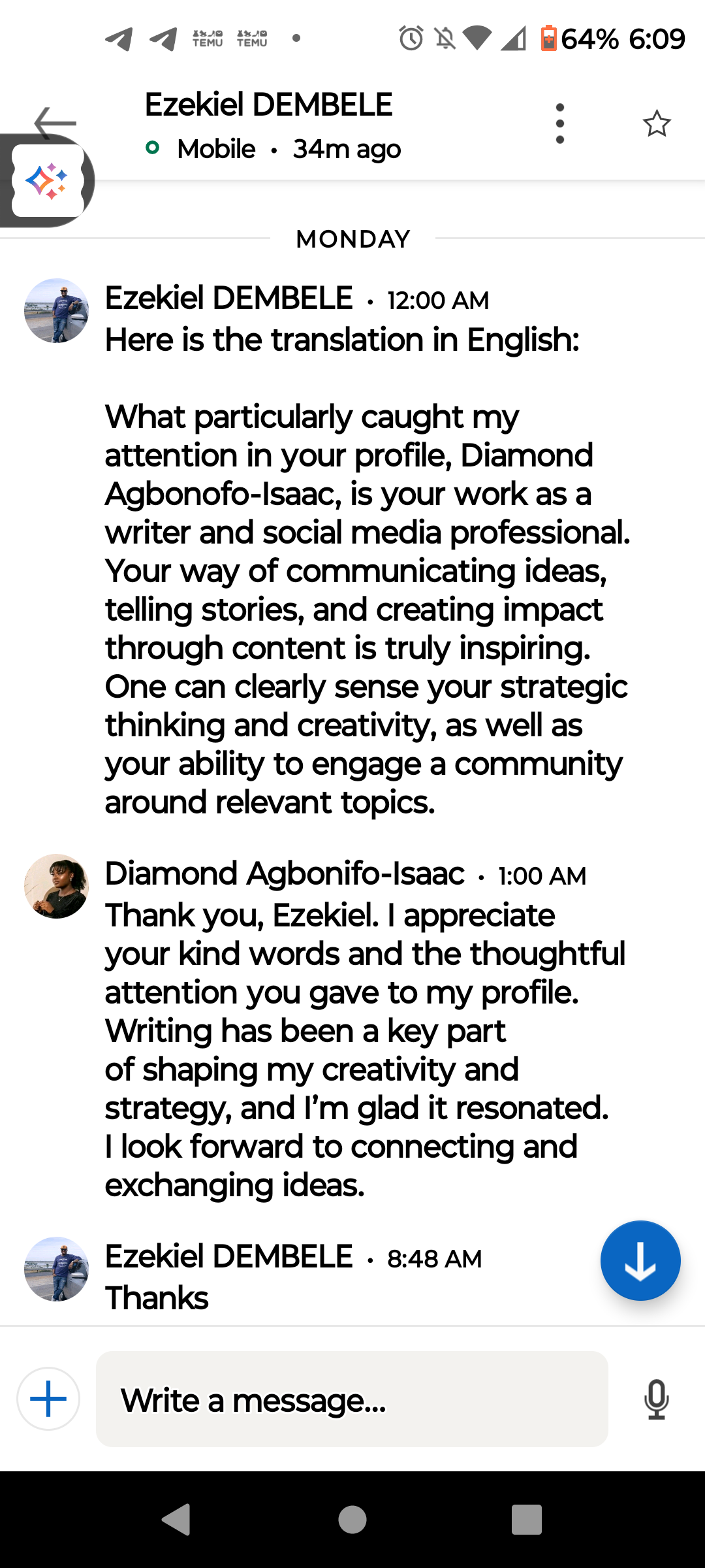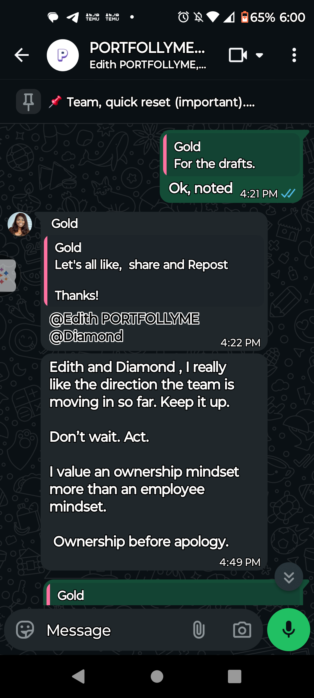 I earned unsolicited recognition from an industry professional who specifically praised my strategic thinking, creativity, and community engagement skills. They called my work 'truly inspiring' and noted how clearly my content creates impact. The message confirmed that my approach to content and storytelling cuts through the noise.